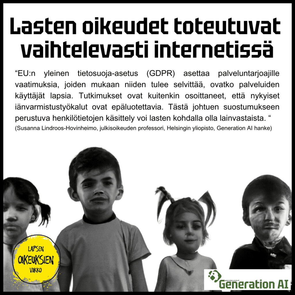 EU:n yleinen tietosuoja-asetus (GDPR) asettaa palveluntarjoajille vaatimuksia, joiden mukaan niiden tulee selvittää, ovatko palveluiden käyttäjät lapsia. Tutkimukset ovat kuitenkin osoittaneet, että nykyiset iänvarmistustyökalut ovat epäluotettavia. Eniten käytetty menetelmä on itseilmoitus, jossa käyttäjän on ilmoitettava ikänsä esimerkiksi syöttämällä syntymäaikansa rekisteröinnin yhteydessä. On helppo nähdä, että tällainen menetelmä sisältää epävarmuustekijöitä. Lapset voivat helposti ohittaa iän varmistuksen ilmoittamalla väärän iän. Tämä tarkoittaa käytännössä, että vanhempien suostumusta sovelluksen käytölle ei yleensä hankita, vaikka se olisikin tarpeen GDPR:n 8 artiklan nojalla. Tästä johtuen suostumukseen perustuva henkilötietojen käsittely voi lasten kohdalla olla lainvastaista. Kysymys iänvarmistustekniikoista on tullut esille myös oikeuskäytännössä. Euroopan tietosuojaneuvosto on esimerkiksi TikTokia koskevassa sitovassa päätöksessään elokuussa 2023 kritisoinut sovelluksen iänvarmistustoimenpiteitä ja kyseenalaistanut niiden tehokkuuden. Lasten oikeuksien toteutuminen edellyttää, että sovellukset ottavat luotettavasti selvää siitä, minkä ikäisiä niiden käyttäjät ovat.