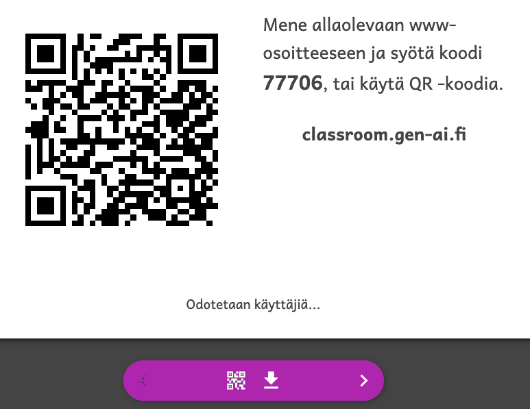 Läs QR-koden eller ange koden på https://classroom.gen-ai.fi
